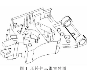 壓鑄件傳統(tǒng)的去毛刺方法由人工采用銼刀、刀具等手工工具對毛刺逐一去除,該方法耗工時長,生產(chǎn)效率低,而且像本文中的精密壓鑄件,對其精度要求高,因此人工去毛刺不能滿足使用的要求。另外,在用沖壓模去除冒口的時候也能將鑄件外周毛刺去除, 但該方法對內(nèi)部結(jié)構(gòu)處及細節(jié)處的毛刺不能去除。